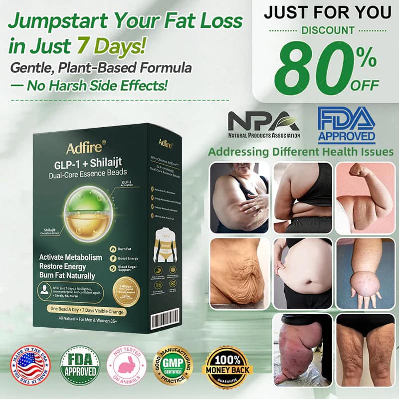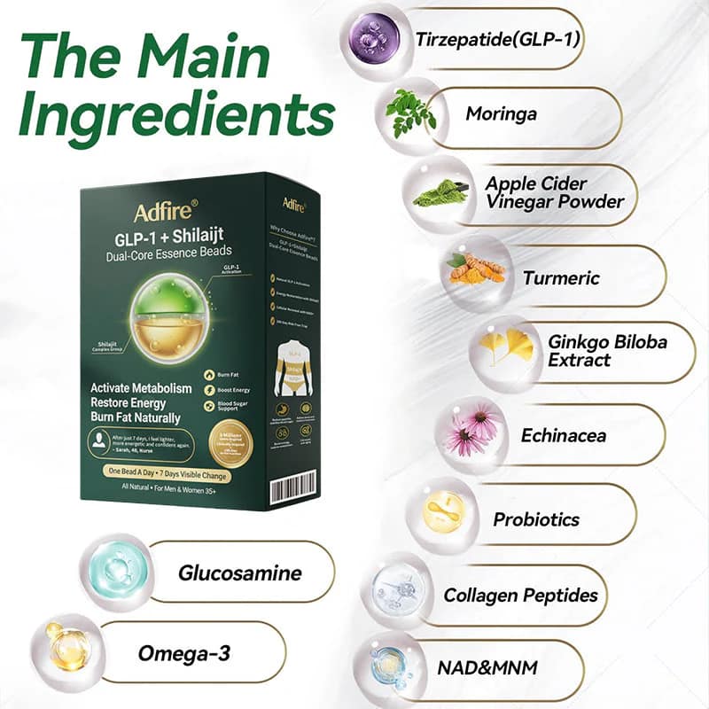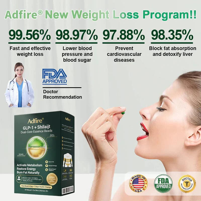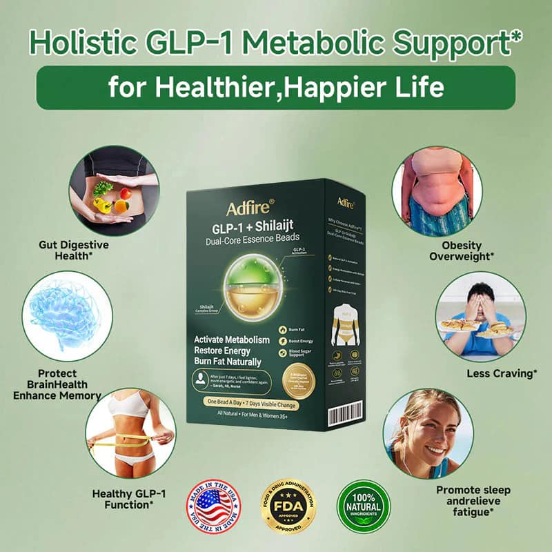 Adfire® GLP-1 + Shilajit Essence Beads boost metabolism, curb appetite, and burn fat naturally—FDA approved, safe, and effective for all ages.