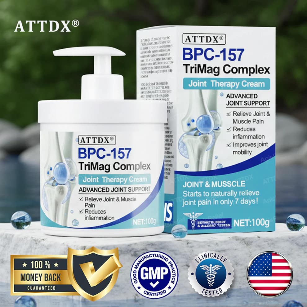ATTDX® BPC-157 TriMag Complex Joint Therapy Cream relieves stiffness, restores mobility, and supports joint strength with BPC-157 peptide and triple magnesium blend.