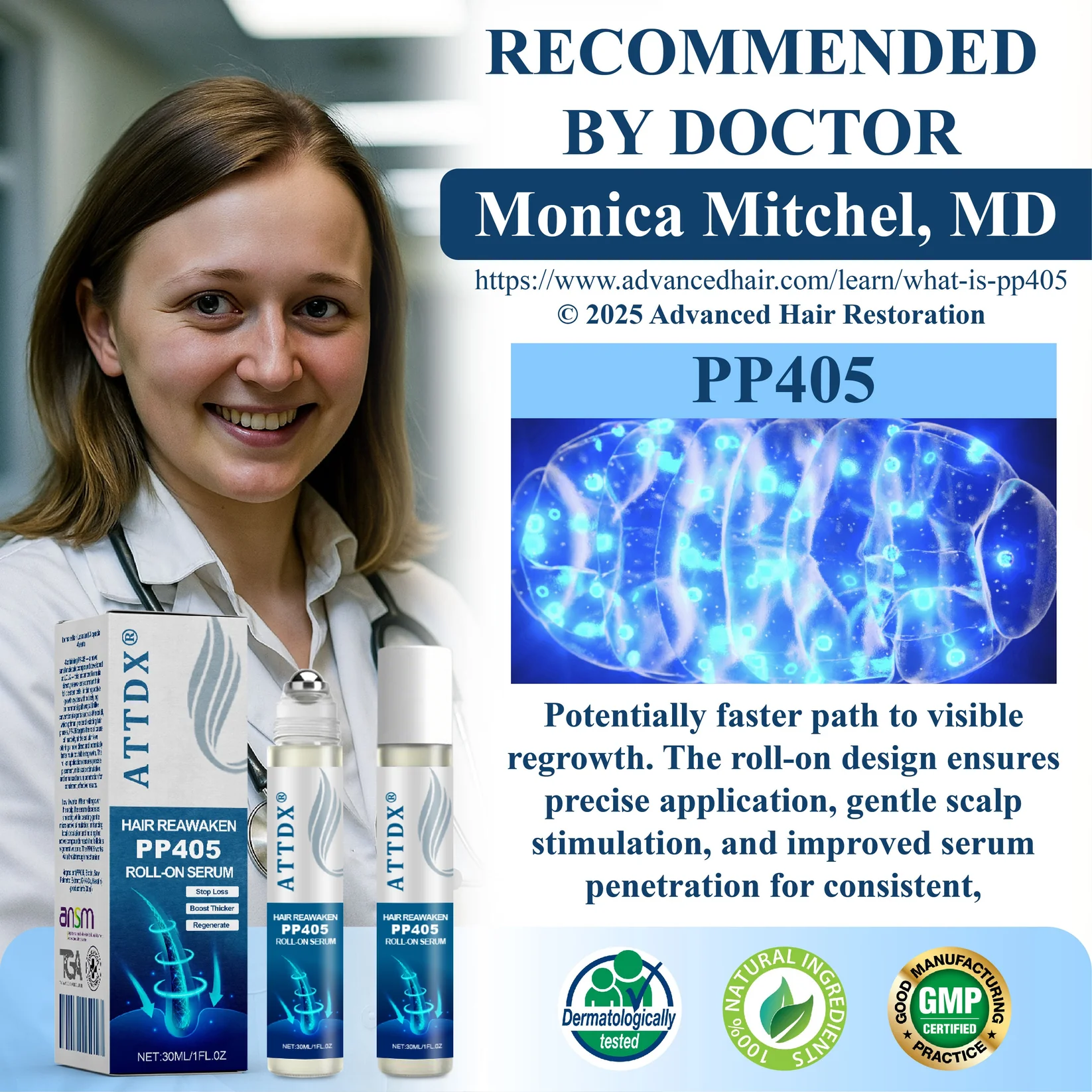 Real results from ATTDX® Hair Reawaken PP405 Roll-On Serum