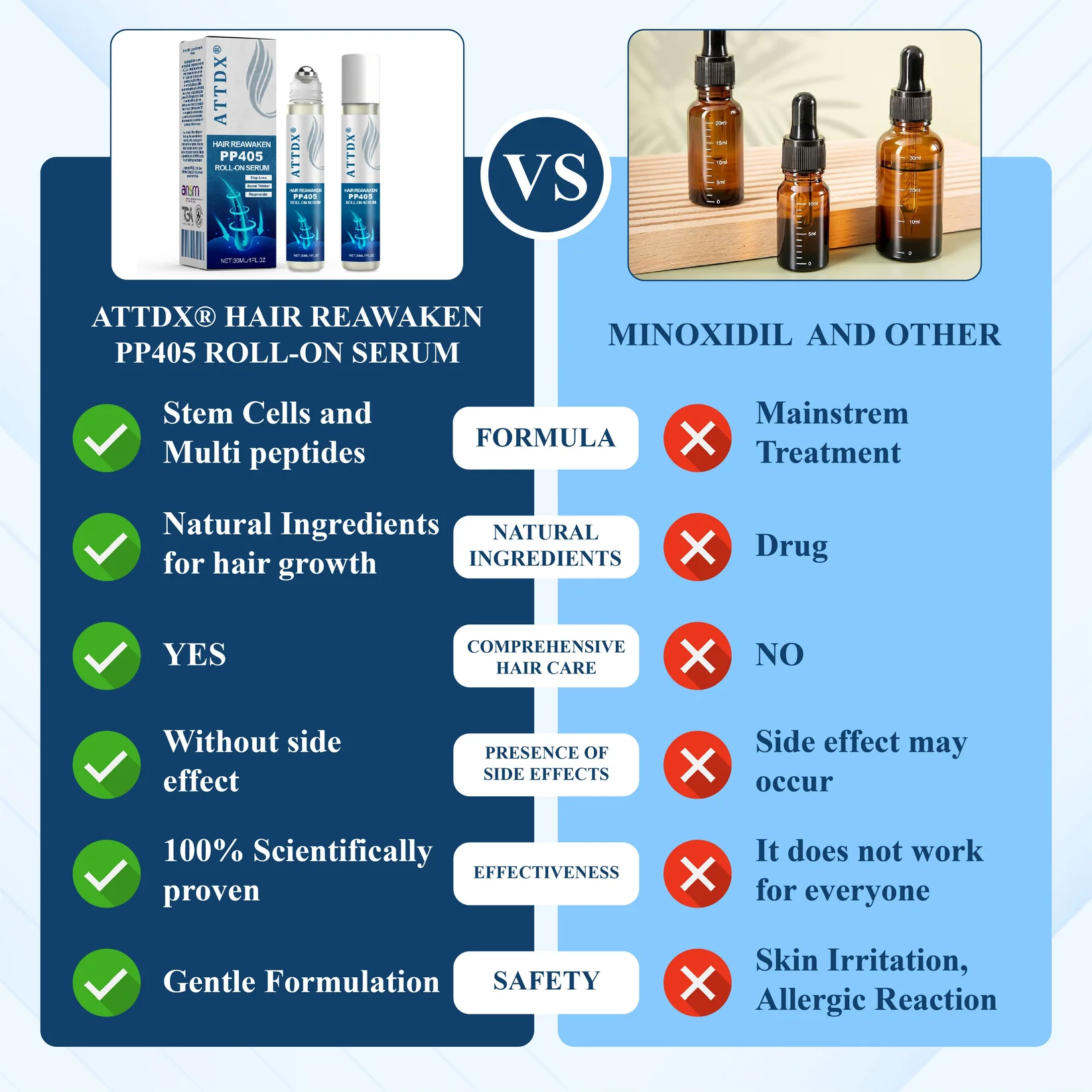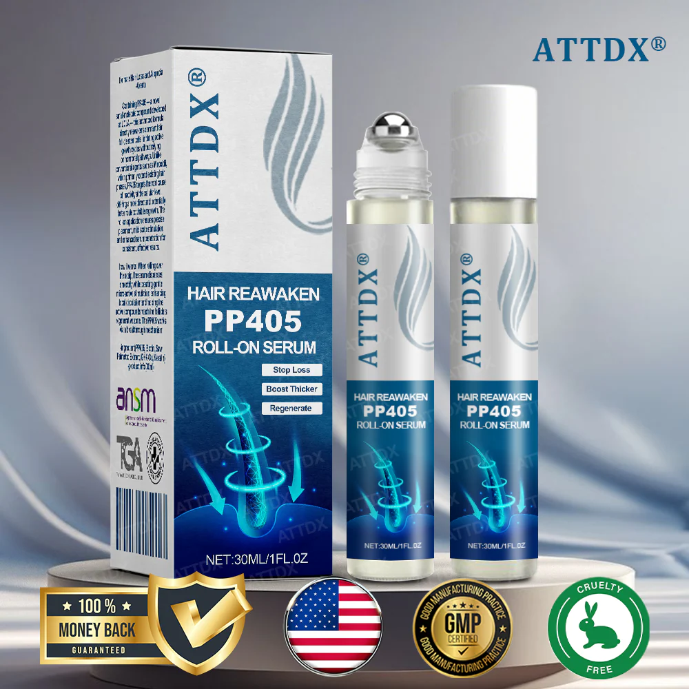 ATTDX® roll on delivers the breakthrough PP405 compound directly to your scalp to reawaken dormant roots, boost growth, and restore thicker, healthier-looking hair