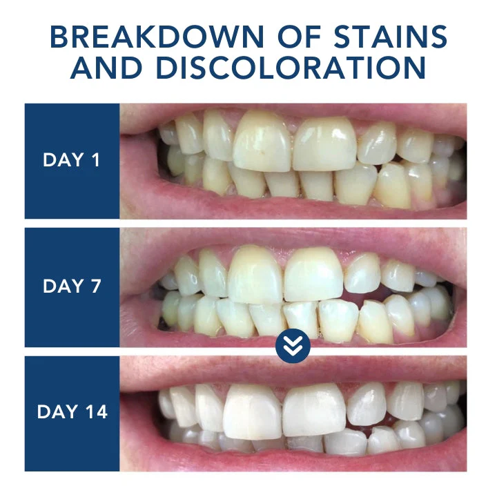 - Day 7: Noticeable whitening as years of coffee stains lift away