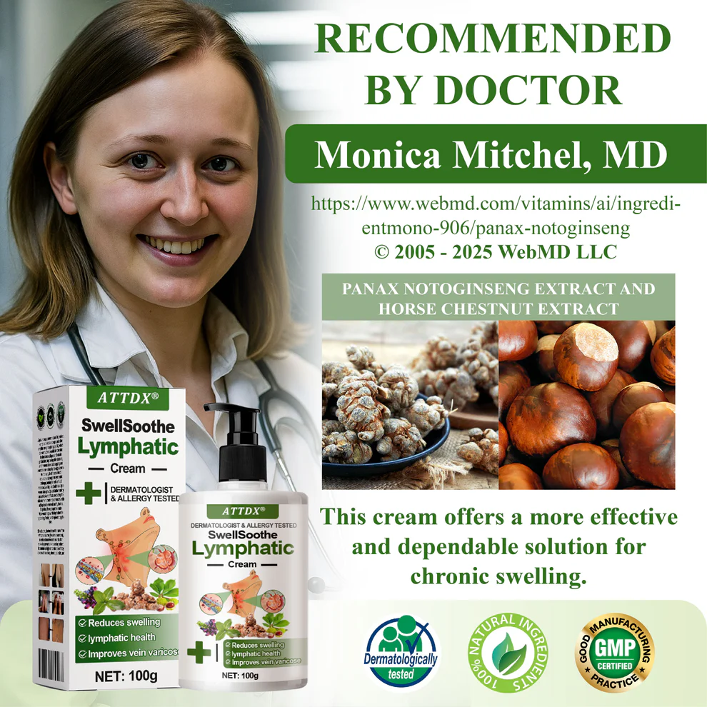 Puffiness, meet your match—ATTDX® SwellSoothe Lymphatic Cream! Packed with Panax notoginseng and Horse Chestnut, it kicks swelling to the curb, smooths out varicose veins, and keeps circulation flowing happy