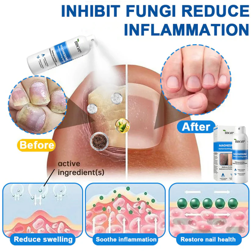 BBOJI® Magnesium Herbal Soothing Spray is a gentle formula designed for daily use, highly praised for its deep soothing and effective healing properties. It delivers intense hydration to relieve dryness and tightness caused by conditions like psoriasis and eczema. Enriched with natural antioxidants and anti-inflammatory ingredients, it helps regulate inflammation, promotes healthy skin cell renewal, and accelerates the natural repair process of damaged skin. Safe and suitable for all sensitive and problem-prone areas of the body, including intimate regions.
