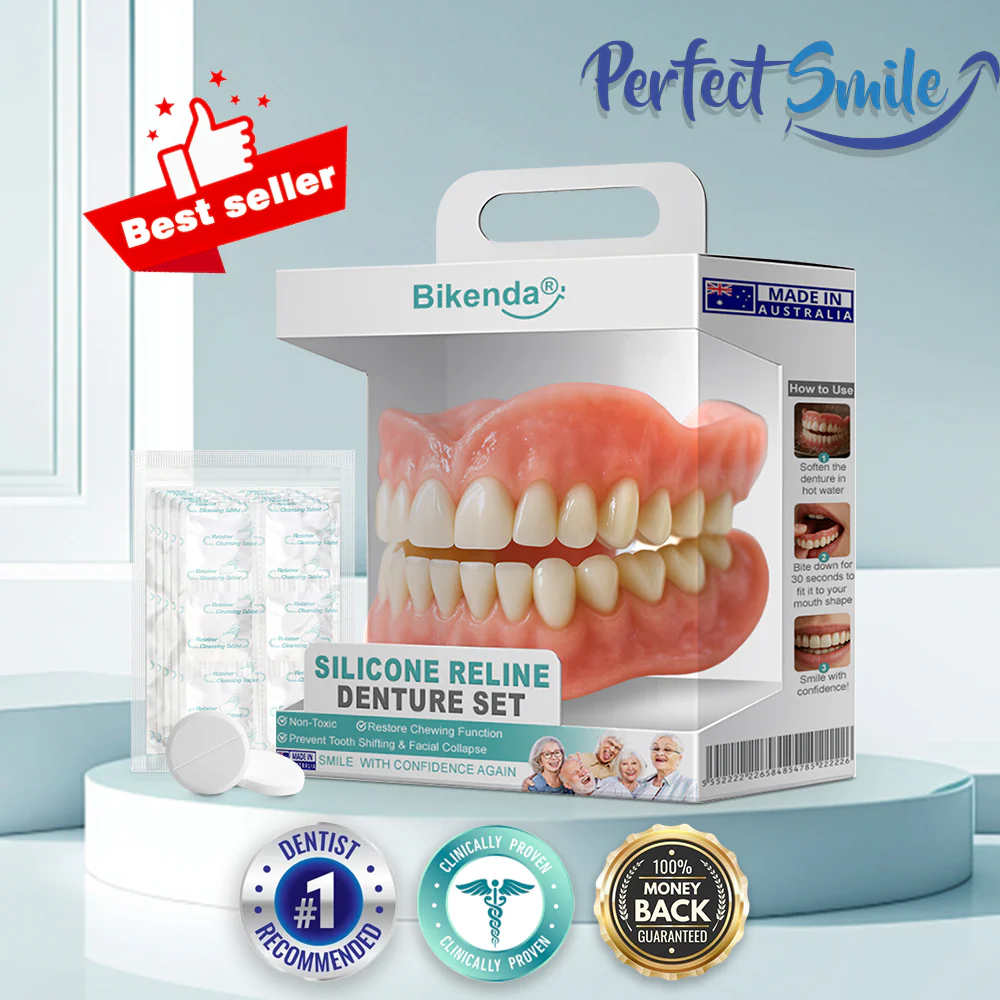 Bikenda® custom-fit dentures mold to your gums for secure, natural comfort—no glue, no dentist—Australian-designed, remoldable in minutes for all-day hold