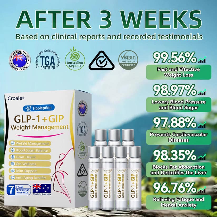 🍀 Croaie® oral solution, based on the breakthrough research of Tirzepatide (GLP-1 and GIP), helps control appetite, improve metabolic efficiency, enhance cardiovascular function, and balance digestion. Clinical studies have shown that dual activation of GLP-1 and GIP can increase weight loss success rates by up to 2.5 times compared to diet alone.