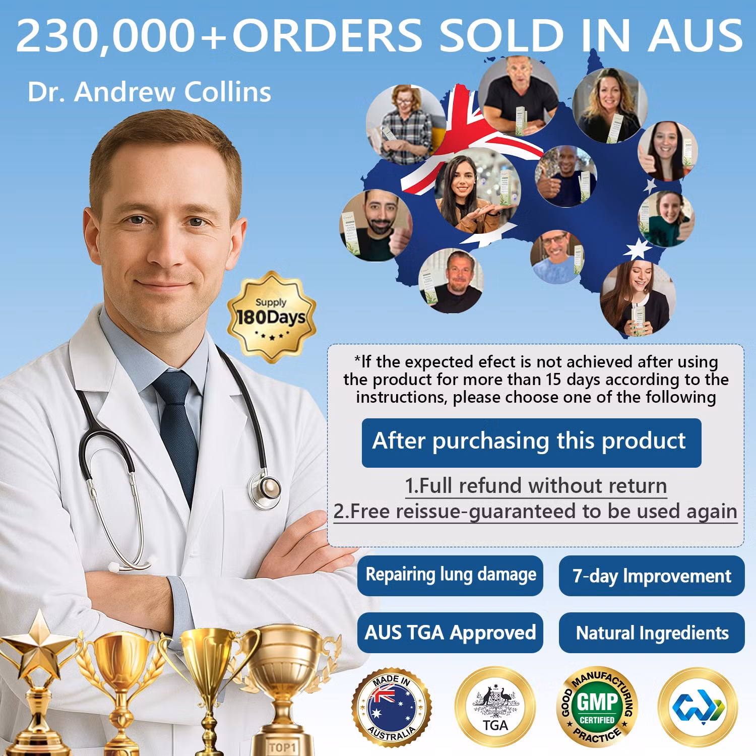 ® uses natural plant extracts, specially formulated to detoxify the lungs and alleviate respiratory issues like COPD, asthma, and seasonal coughs. By clearing mucus, reducing inflammation, and supporting lung tissue regeneration, it effectively enhances breathing quality. Suitable for all ages, our low-sugar, low-carb formula provides a refreshing, healthy breathing experience.