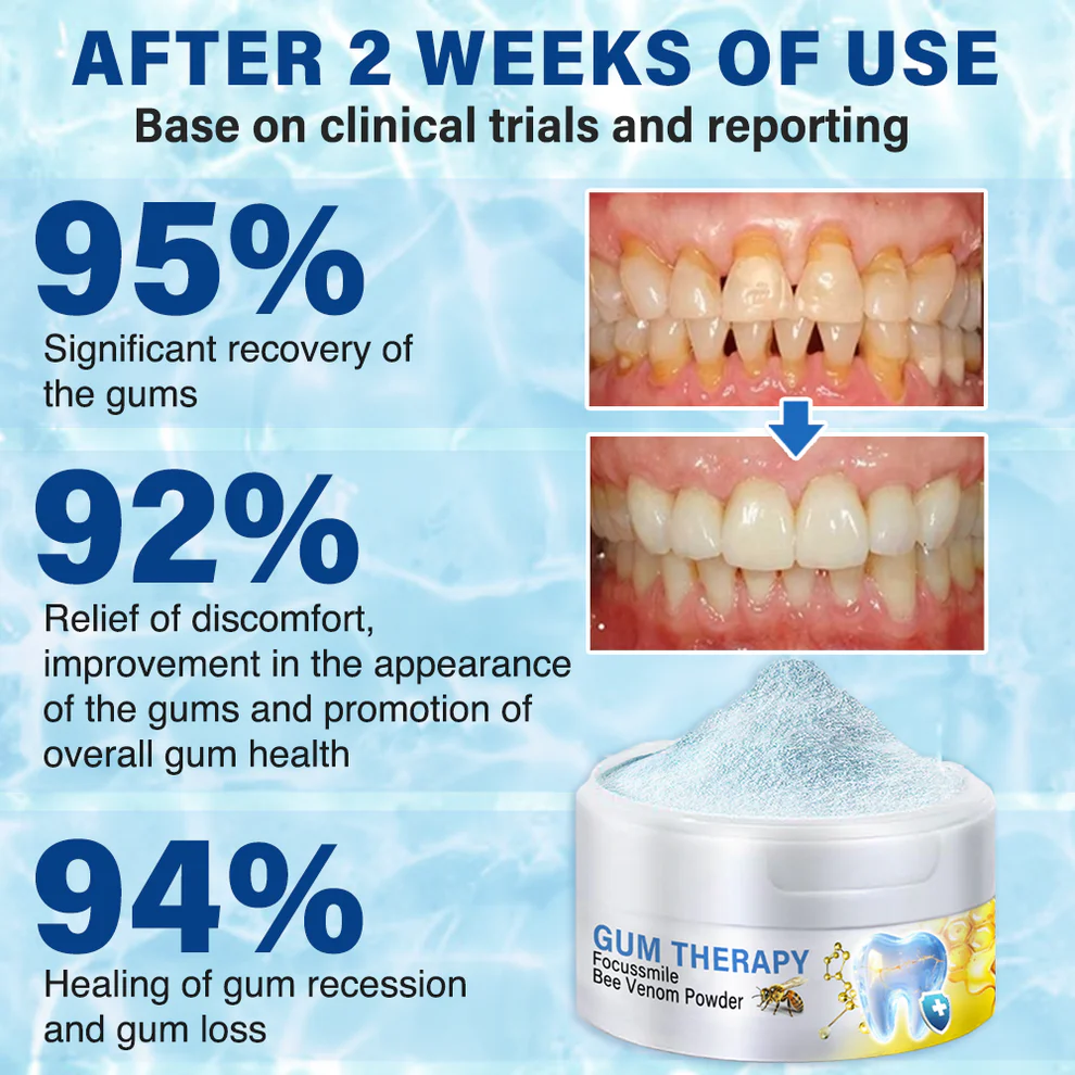 Furzero® Focussmile Bee Venom Treatment Oral Powder is a breakthrough treatment that combines a proprietary 5-in-1 synergy of bioactive ingredients that target the root causes of gum disease while stimulating actual tissue regeneration – both gum and tooth structure. It’s like stem cell therapy for your mouth, working at a cellular level to naturally regenerate lost gum and tooth tissue.
