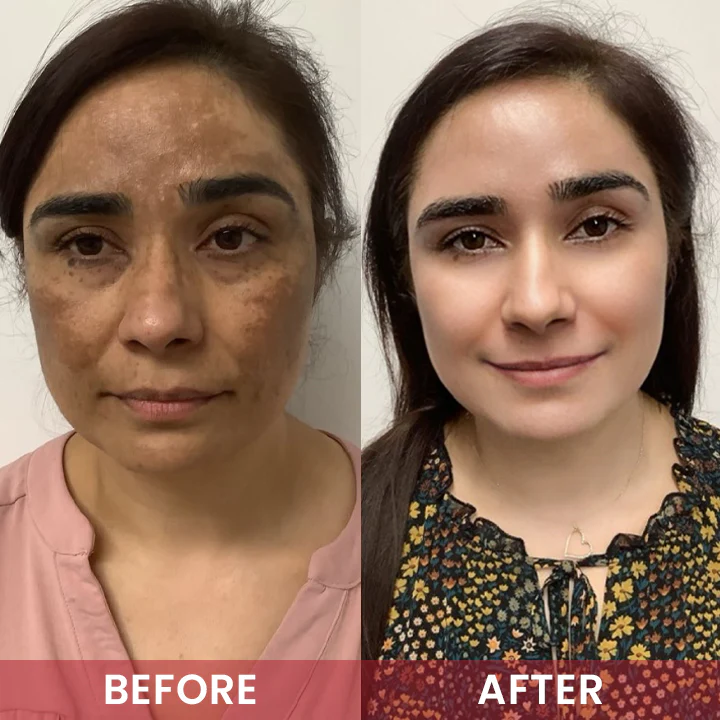 “I love the lightweight feel. My melasma looks lighter, my skin feels bouncy, and the dryness around my chin is gone.”— Rachel P., 38, Corporate Trainer