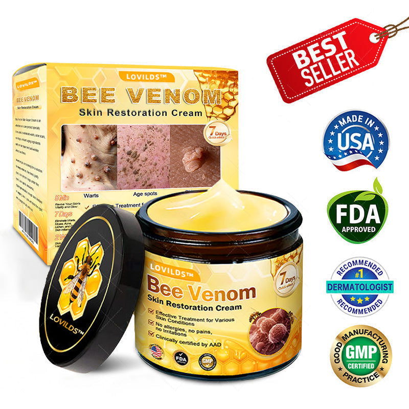 LOVILDS™ Bee Venom Skin Restoration Cream lifts, firms, and smooths skin, reducing wrinkles, sagging, cellulite, and stretch marks with visible results in 7 days.