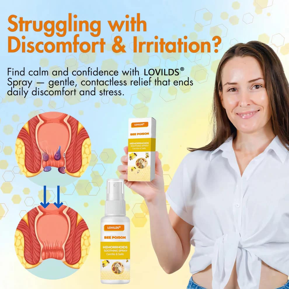 LOVILDS® Hemorrhoids Bee Poison Soothing Spray is here to help. Our advanced formula is designed to provide rapid relief from hemorrhoid symptoms, allowing you to get back to living your life comfortably and confidently.