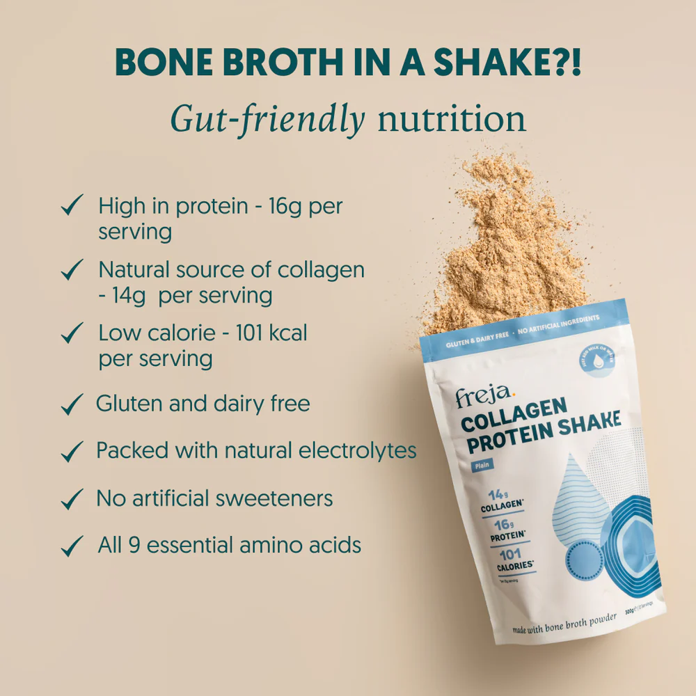 Freja Bone Broth Shakes are made with just a few natural ingredients, including slow-simmered bone broth, coconut sugar and natural flavourings.
