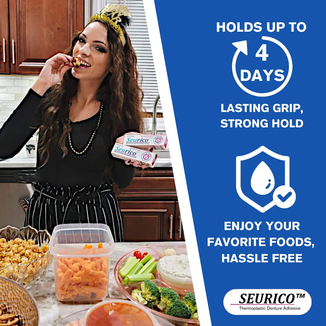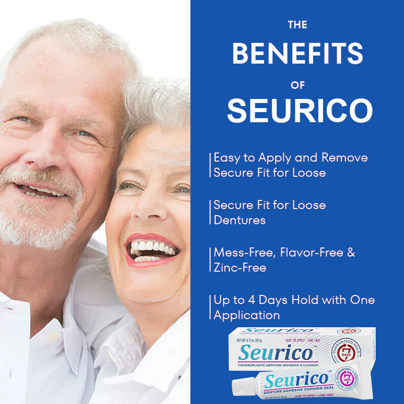 “Seurico™ has truly transformed my daily life! Now I can enjoy my meals and smile all day without denture pain.”–Lily Hall