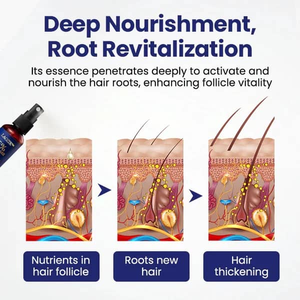 LAOZIK™ 5% Minoxidil Hair Growth Serum restores thinning hair, reactivates follicles, blocks DHT, and delivers thicker, fuller hair fast