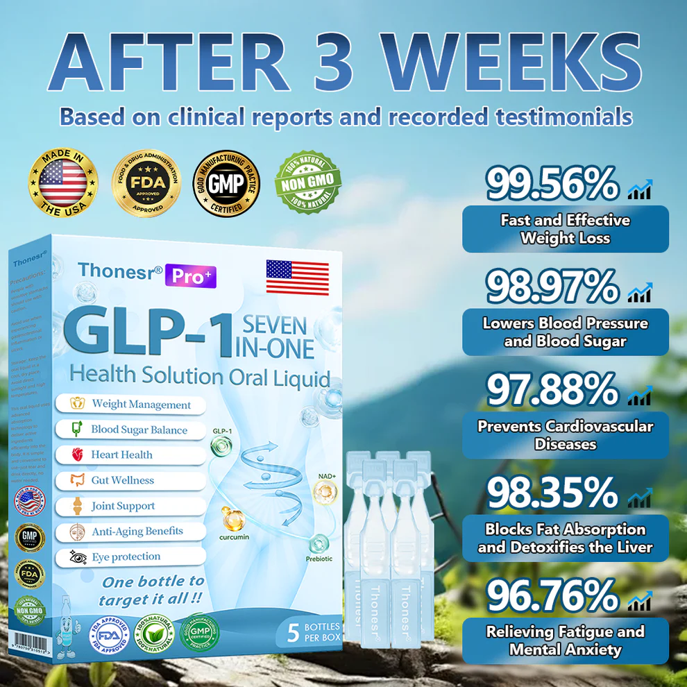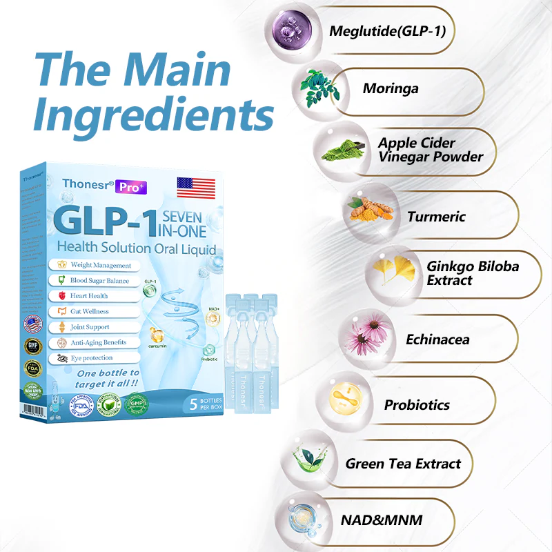 Thonesr GLP-1 Seven-In-One Oral Liquid supports weight loss, metabolism, vision, and full-body health using FDA-approved natural ingredients.