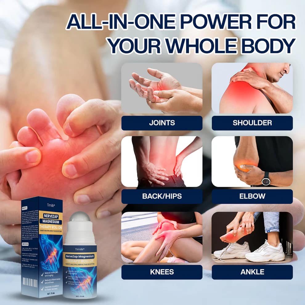Timilk® NerveZap Magnesium Roll On relieves nerve pain, tingling, and numbness fast while improving circulation and supporting natural nerve repair