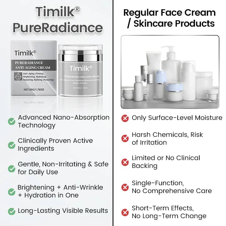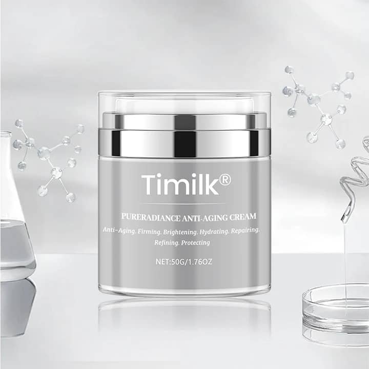 Timilk® PureRadiance Anti-Aging Cream smooths wrinkles, brightens skin, fades dark circles, hydrates deeply, and protects against pollution and blue light