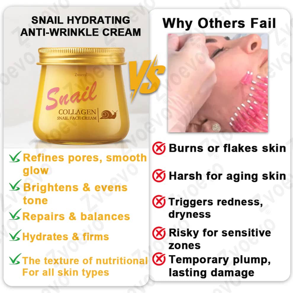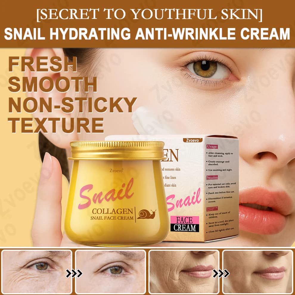 Zvoevo® Snail Collagen Face Cream deeply hydrates, smooths fine lines, firms skin, and restores youthful bounce with gentle, fast-absorbing ingredients